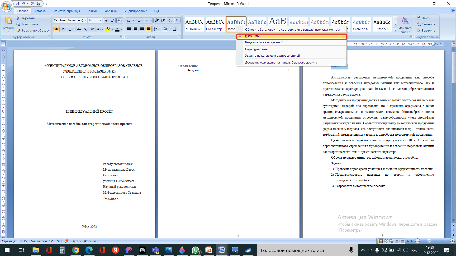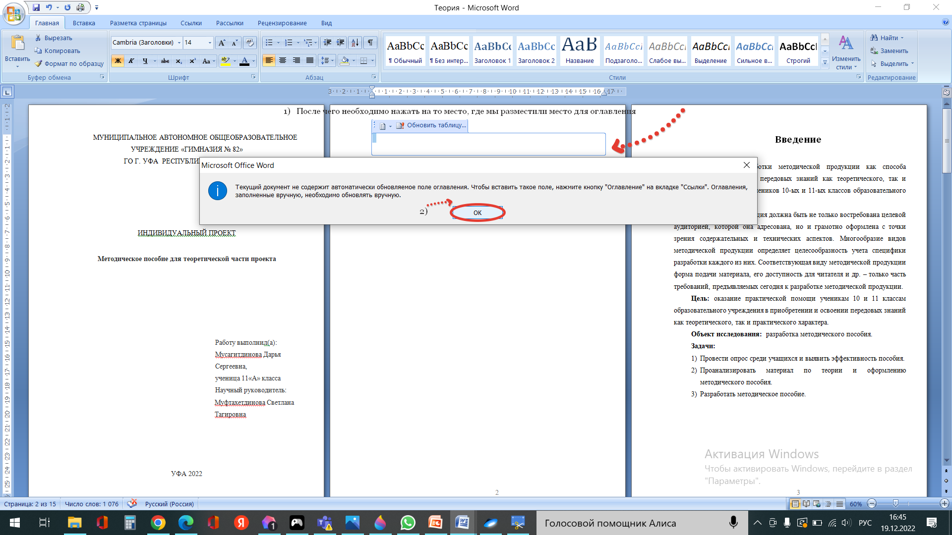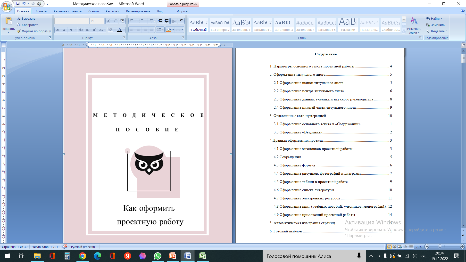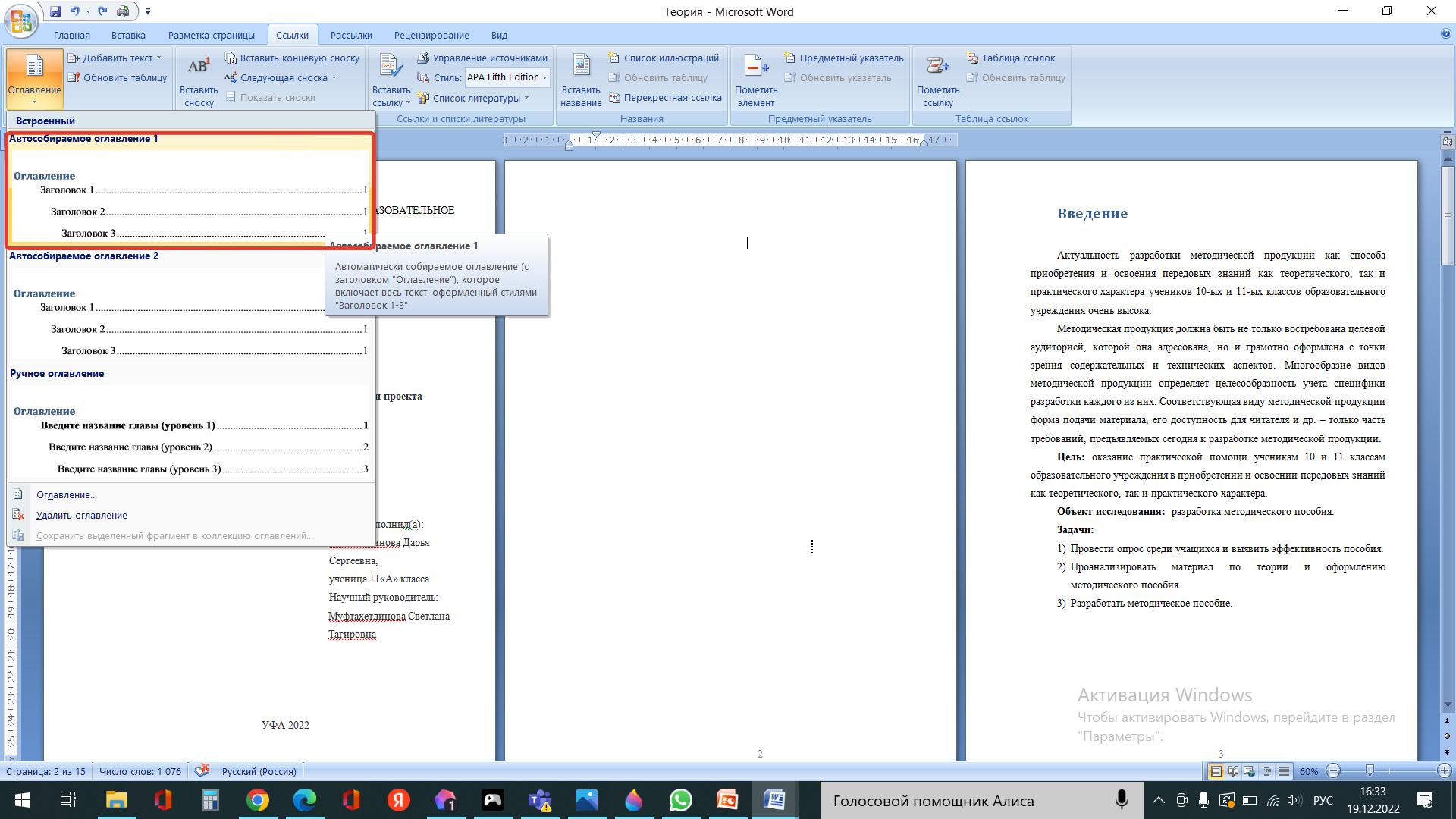 7) После всего нужно обновить таблицу целиком, текст «Оглавление» поменять на «Содержание».