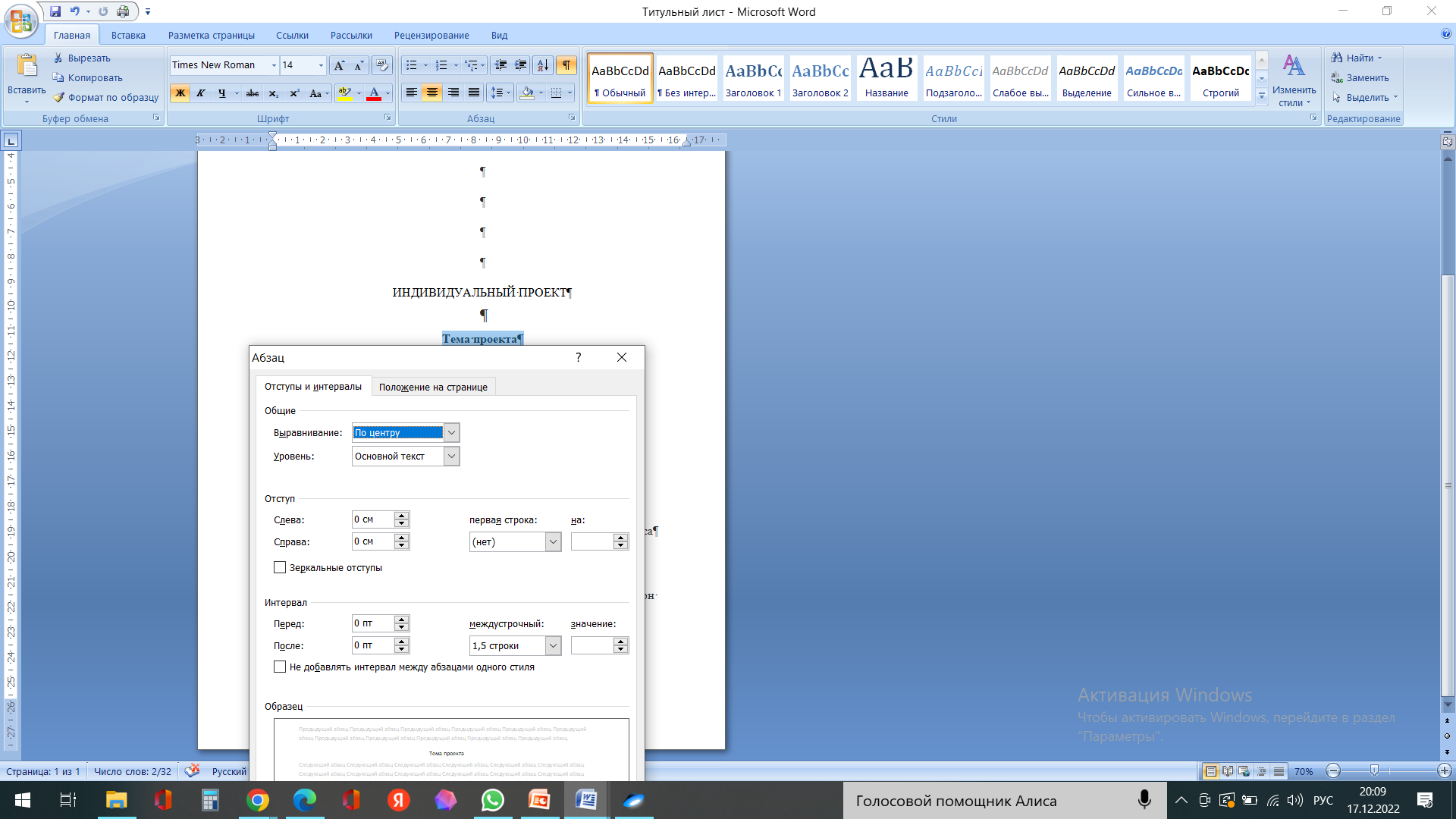 Глава проектной работы начинается с нового листа, строчными буквами с первой заглавной по ширине страницы, главы работы нумеруются арабскими цифрами без точки (например, 1 Глава первая).