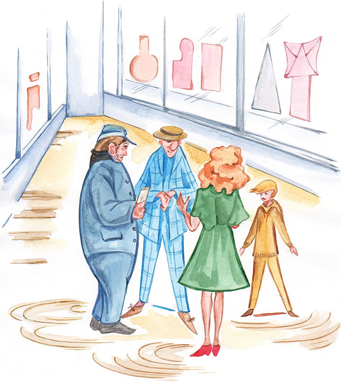 Воскресное утро в семье треугольника и трапеции всегда начинается немного позже обычного. В Планиметруме, как у людей с Земли: фигуранты устают от ежедневной суеты и работы. Папа по обычаю встает раньше всех. Утро для треугольника – время планирования и время тишины, пока все спят. Анд просыпается, делает себе кофе и отправляется к рабочему столу. Синий прямоугольный монитор ранним утром помогает Анду разобраться с текущими делами и ознакомиться с новостями.