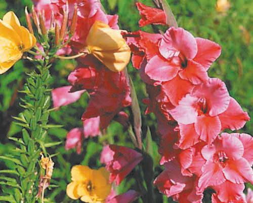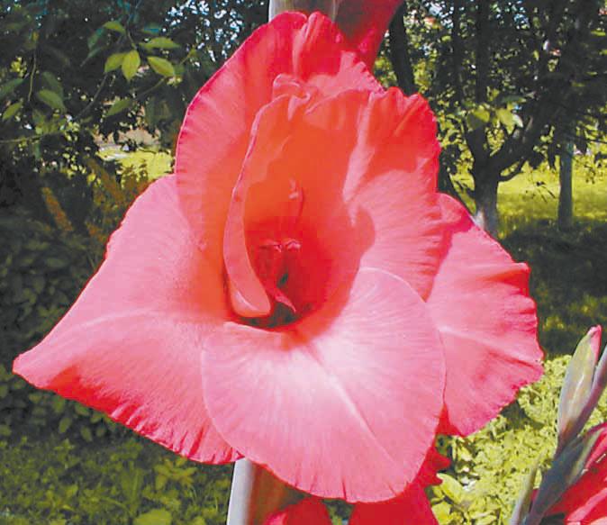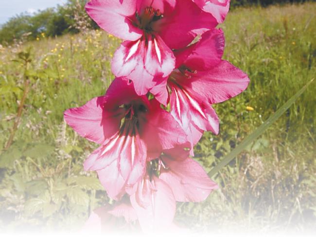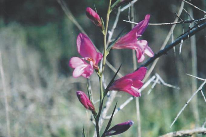 Гладиолус посевной – Gladiolus segetum Ker. Родина— Средиземноморье, Южная и Средняя Европа, Крым, Кавказ. Впервые был описан греческим врачом Диоскоридом (50-е годы н.э.), затем в 1596 г Стебель 50-75 см высотой, прочный, тонкий. Соцветие рыхлое, одностороннее, из 3-4 крупных цветков. Цветки открытые, колокольчатые, карминово-розовые или светло-пурпуровые с белыми полосами на нижних лепестках. Зимостойкий, цветет в апреле-мае. Клубнелуковица 2-2,5 см в диаметре.