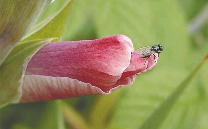 Гладиолус примуловидный – Gladiolus primulinus. Происхождение – тропики Восточной Африки, регион реки Замбези. В Европу завезен в 1889 г. Высота 50-80 см, цветет в июле-сентябре. Верхние лепестки внутреннего круга венчика шлемообразно загнуты вперед и служат чем-то вроде капюшона для защиты репродуктивных органов от избытка влаги. Окраска розово-красная. Соцветие рыхлое, цветки расположены на большом расстоянии друг от друга и в среднем не превышают 7,5 см. Этот гладиолус дал начало целой группе примуловидных гибридов, хотя чистый примулинус так и не нашел широкого применения.