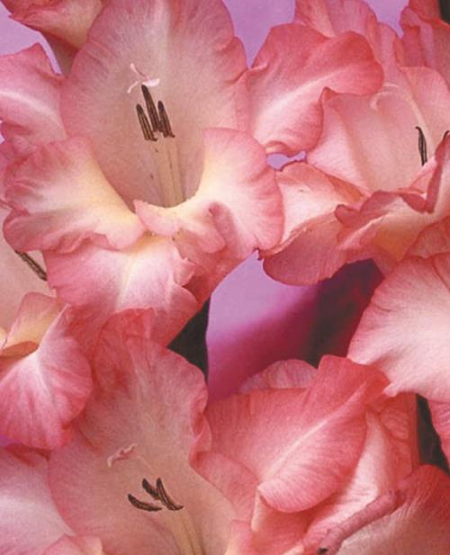 Следует также добавить, что темно-зеленых гладиолусов – 06 – очень мало, поэтому в литературе их часто даже не упоминают. Бледножелтые цветы с шифром 10 обычно называют кремовыми. Цвет с шифром 36 должен был бы называться темно-лососевым, но в России его называют карминово-красным. Номер 50 в таблице отсутствует – как можно представить себе бледнокрасный? Малиновый цвет в его светлых вариантах – 60 и 62 – правильнее называть бледно- и светло-розовым, но чтобы он не путался с группой розовых – 40, у нас его называют малиново-розовым. Цвета с шифрами 80 и 82 обычно называют светло-голубым и темно-голубым соответственно.