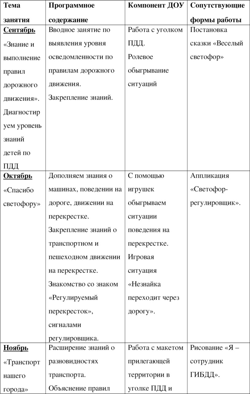 Раздел 1. Примерное планирование занятий по ПДД на год (подготовительная группа)