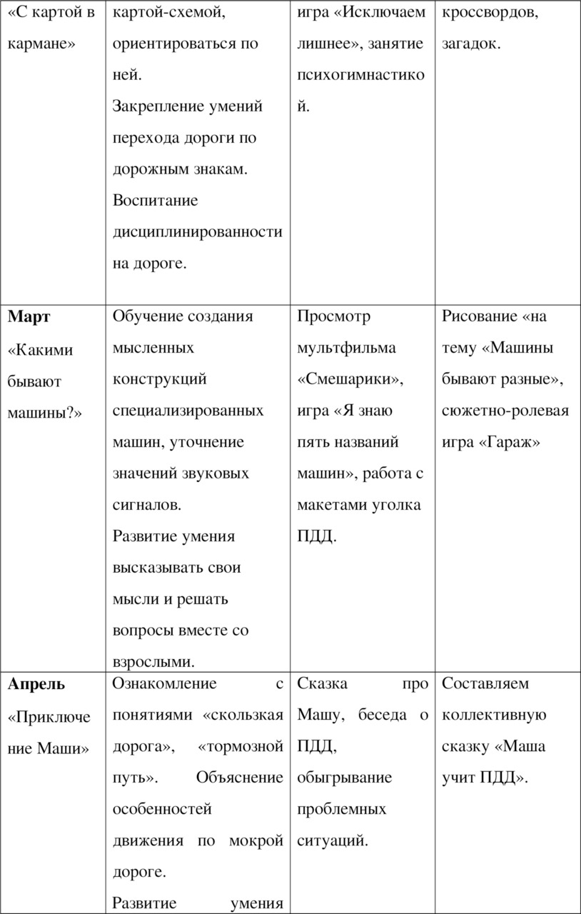 Представить план-схему примерного планирования занятий по ПДД на год.