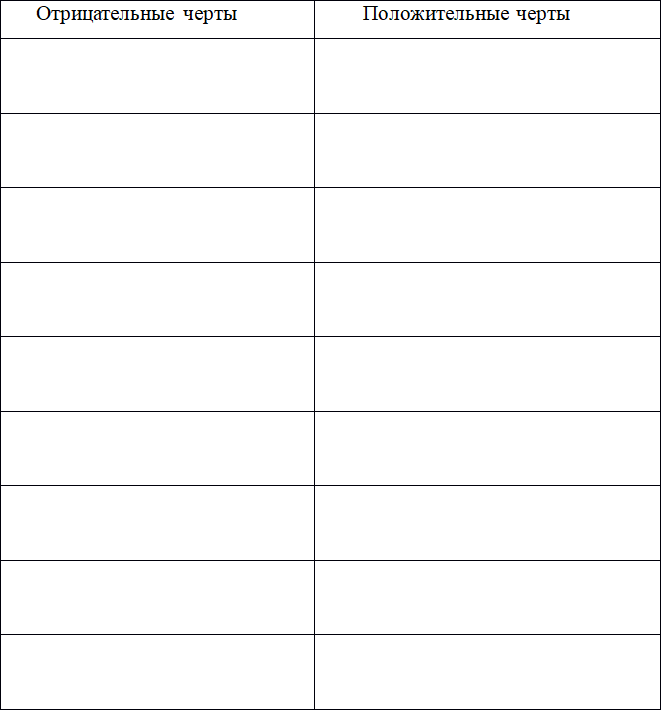 Если ты хорошо представляешь своего будущего мужа, можешь не заполнять таблицу ниже. Она предназначена для промежуточного этапа по анализу отрицательных черт твоих бывших партнеров.