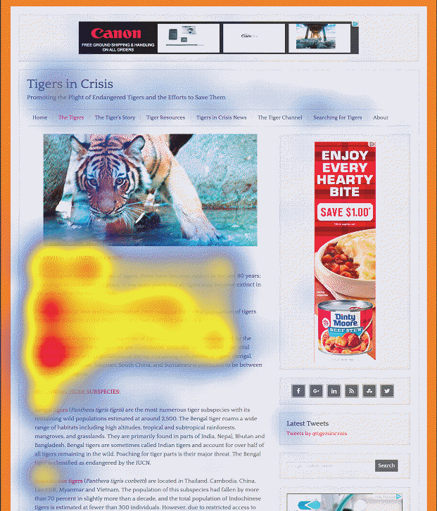 Рис. 3. Тепловая карта чтения электронного текста [Pernice, 2017]