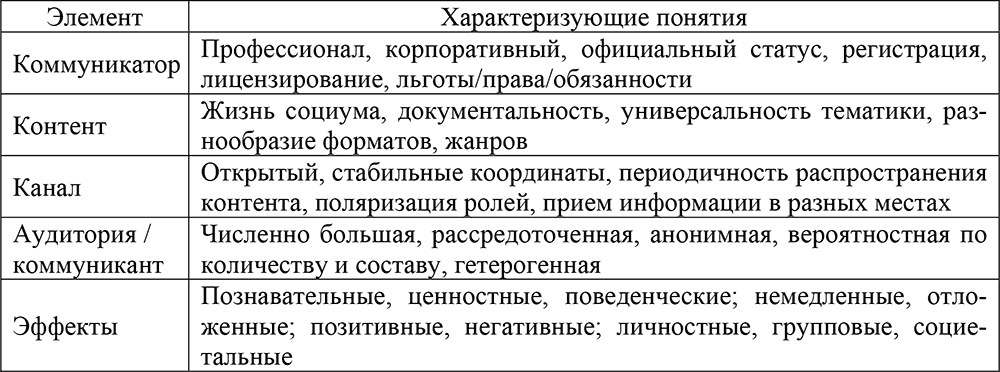 В обобщенном виде признаки интернет-СМИ могут быть представлены в таблице [Интернет-СМИ, 2010, с. 59] (табл. 1).