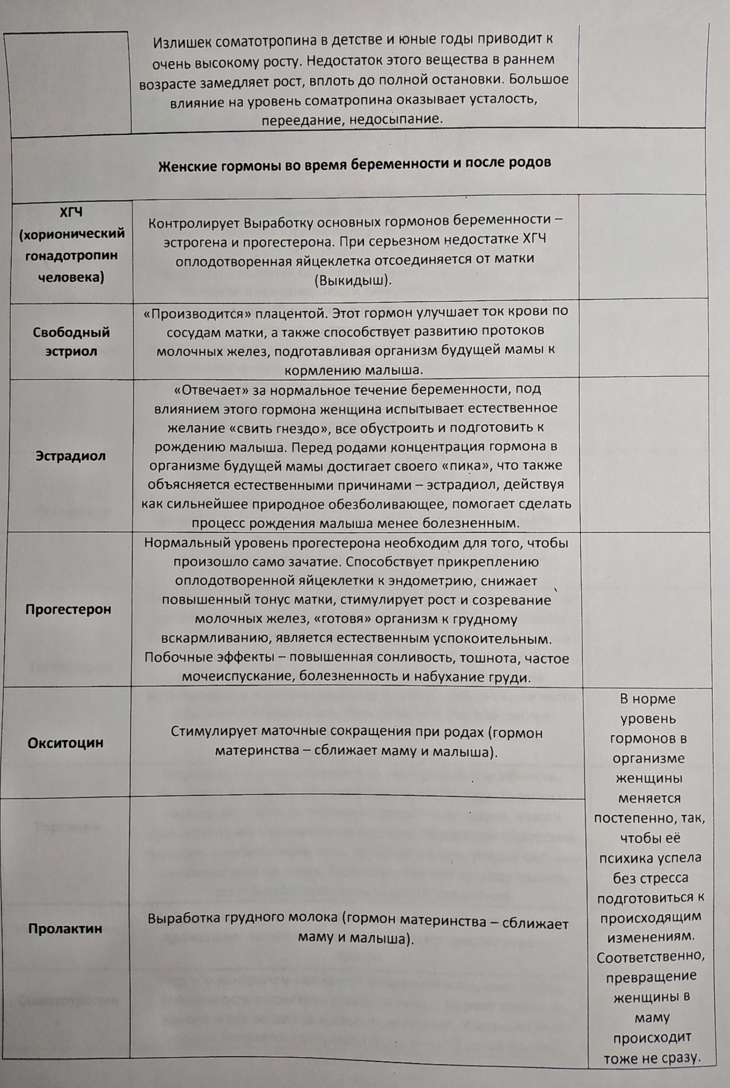 Ниже хочу привести табличку, в которой собраны гормоны, которые влияют на женщину во время беременности и родов5. «Коктейль» тот ещё! И как вы понимаете дисбаланс хотя бы одного из них приводит к сбоям в функционировании всего организма.