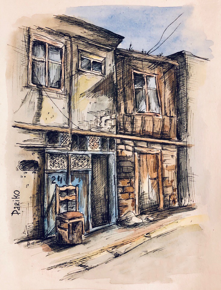 Наша любовь началась еще до личного знакомства, в далеком детстве: с фотографий старых узких улочек, резных балконов, которые как гроздья винограда свисают с потрескавшихся стен домов, с альбома Пиросмани, где взрослые лица смотрят детскими наивными глазами…