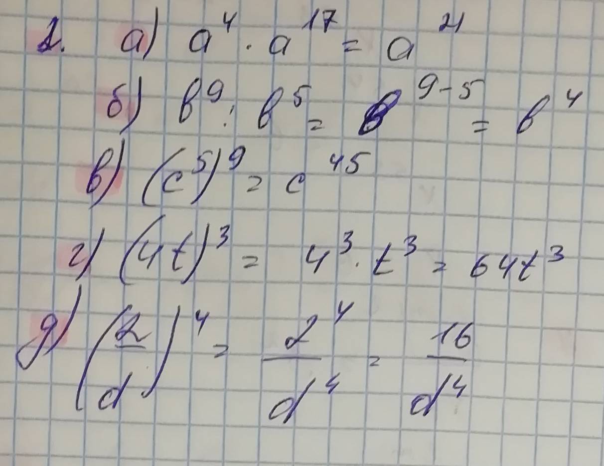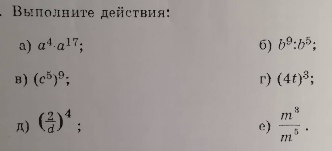 Д) В подобной дроби делаются аналогичные действия, что было под буквой Г – возводится каждое число в степень. 2⁴ = 16, и буква d в четвёртой степени.