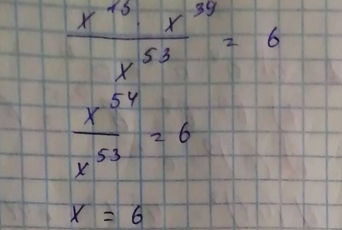 Пояснение: В этом уравнении таким же образом в числители степени складываются, а затем вычитаются. Поэтому получается, что х=6.