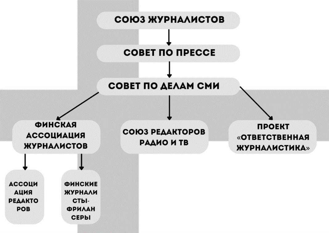 Система медийного саморегулирования Финляндии представлена несколькими институтами: национальным кодексом профессиональной журналистской этики, внутриредакционными кодексами профессиональной журналистской этики, национальным медиасоветом, платформами для медиакритики и профессиональными организациями.