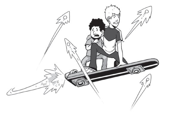 Сэм кивнула, сгребла меня рукой робота и метнула туда, откуда послышался крик. Пролетая над полем битвы, я засек источник: паренька обступал целый поток крошечных муравьев-роботов. Я выключил двигатели ранца и спланировал к пацану на доске.