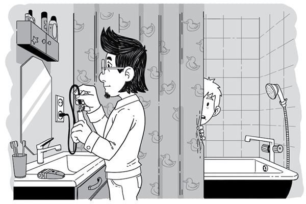 Я задержал дыхание. Если я его вижу – он меня тоже? Я приготовился заорать «ТУНЕЦ!!!» во всю мощь легких в ту же секунду, как он отдернет занавеску. Но он этого не сделал. А вместо этого наконец отвернулся, убрал провод назад в шкафчик и вышел из ванной.