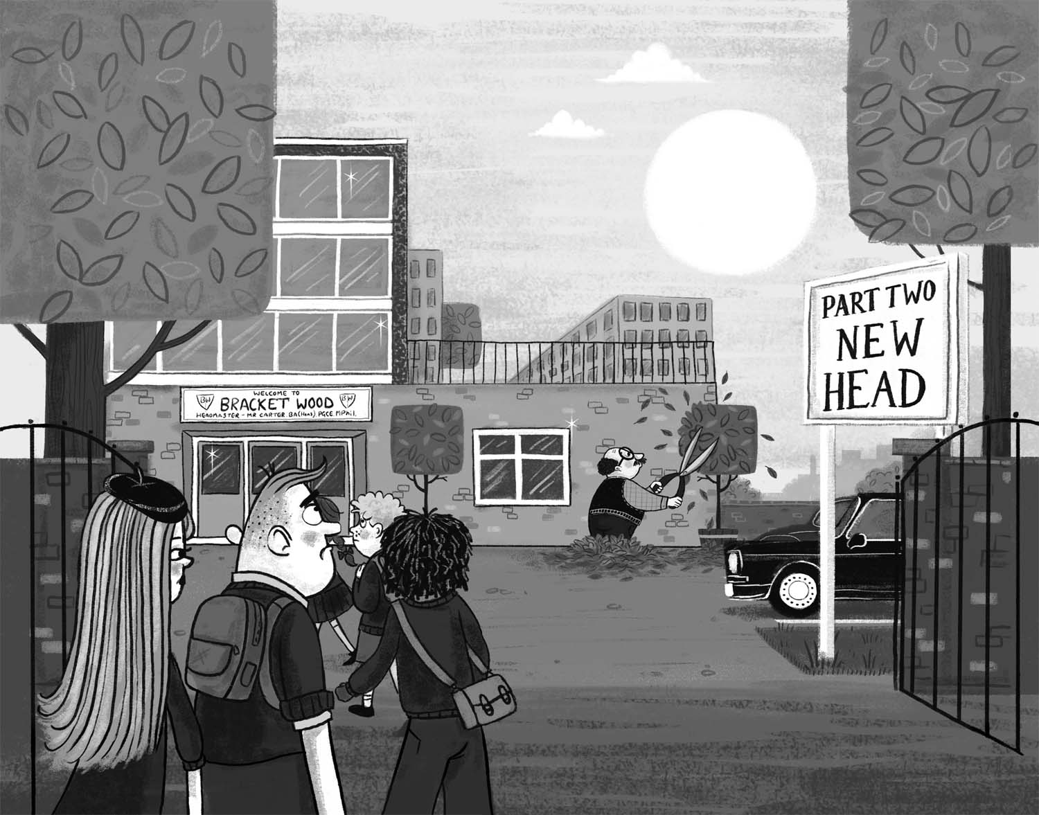With that he laughed madly, like villains do in pantomimes. And then the head teacher of Bracket Wood School – or possibly the ex-head teacher – was gone, slamming the door behind him.
