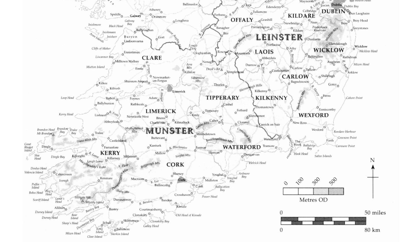 The narrative strategy adopted in the rest of the book is simple. It is based on the configuration of the Irish landscape. We start high up with mountains and uplands, then come down to lower levels in subsequent chapters before moving out towards the sea. The journey across the lower altitudes takes us in and out of the vast expanses of peatlands and the great lakes and rivers that play such a dominant role in the landscape. The Burren and turloughs, internationally famous treasures of Ireland and Europe, deserve a special chapter to themselves. The small remnants of ancient broadleaved woodlands make up the following chapter. Farmland, replacing ancient woodlands, commands most of the land area of the country and is discussed next. As a modified ecosystem it provides many opportunities for wildlife. Then we move on to the coastline, the islands and finally the sea.