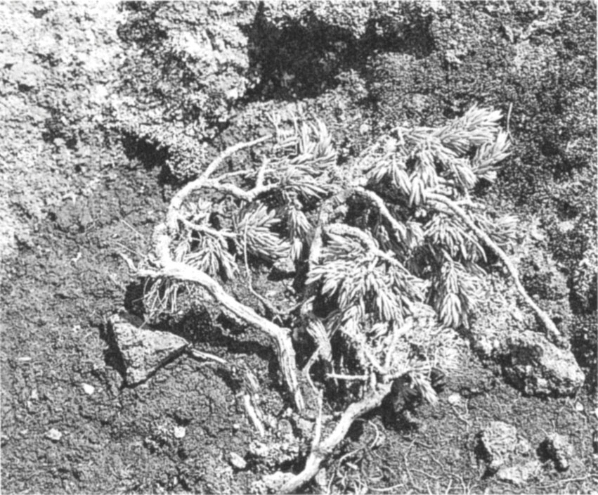 A few of the alpines do not give in to this ‘erratic’ behaviour but, as Hart observed, they are not numerous: ‘Of those more thoroughly alpine plants which never descended to sea level in these mountains (or elsewhere in Ireland), only three are ever met with on the exposed summits or outer ridges.’8 They were alpine clubmoss, dwarf willow and stiff sedge. As to the species that will occur very high up, Praeger listed eight that persisted above 914 m on the Macgillycuddy’s Reeks, Co. Kerry.3 The species, with their maximum recorded altitudes in Ireland were: starry saxifrage (1,036 m), alpine hair-grass (1,027 m), stiff sedge (1,006 m), green spleenwort (960 m), mountain sorrel (960 m), roseroot (960 m), alpine meadow-grass (945 m) and dwarf willow (930 m). These, together with the alpine clubmoss, could be taken as the hard core of the Irish alpine and arctic-alpine flora.