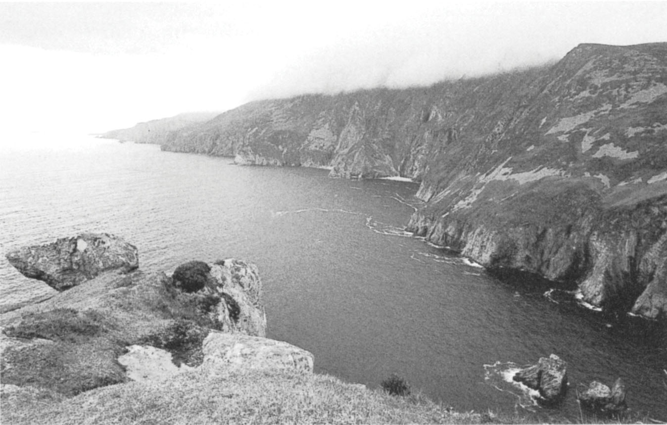 ‘One of the finest things of its kind’ was how Praeger described the mountain of Slieve League which brutally confronts the Atlantic Ocean at the end of the southwestern promontory of Co. Donegal. Made up of very old rocks – ancient schists, gneisses and quartzites laid down some 500 million years ago and then thrust up in the Caledonian upheavals – Slieve League rises to 595 m at its summit. It is essentially a quartzite peak, with some Carboniferous sandstone and even less limestone occurring on the summit. Like the Benbulbin mountain range it was almost certainly ice-free in days of glacier supremacy, a haven for arctic-alpine plants and other refugees. The southern side of the mountain has been truncated by the continual pounding of the Atlantic to form some of the most impressive cliffs in Europe. At sunset, the cliff structures, made mainly of quartzite and gneiss, glint and reflect the light in a way that signals their long and tortured history. On the north side of the mountain more cliffs plummet from about 460 m, equally dramatically, down to the dark and seemingly sinister Lough Agh that sits at an altitude of 245 m. Starting from the village of Teelin to the southeast, one of the best walks in Ireland can be had by ascending the summit including a bracing passage along a knife-edge ridge, appropriately named ‘One Man’s Path’. The northern precipice is one of the finest sites in Ireland for arctic-alpine plants and has attracted the attention of many distinguished botanists and naturalists for more than a hundred years. The number of arctic-alpine species is greatest here, and progressively declines southwards down the west coast and even more rapidly as one moves southwards along the east coast of Ireland.