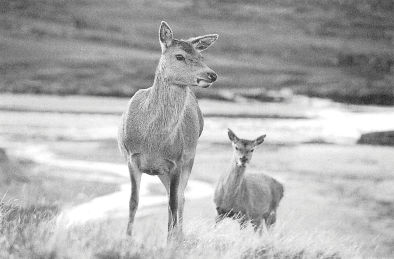 It is remarkable that there was no published systematic work on the diet of red deer in Ireland until 1993 when Sherlock & Fairley gave an account of the food of a small herd (a stag, five to seven hinds and calves) living in a 24 ha enclosure of open terrain, at Mweelin in the Connemara National Park, Co. Galway.41 The altitude ranged between 60 m to a maximum of about 120 m. The vegetation of the this area comprised 36% grassland/heath, dominated by heather and purple moor-grass; 35% peatland, dominated by purple moor-grass, common cottongrass, black bog-rush, bog asphodel and bog-myrtle; 16% grassland/bracken, dominated by bracken with the main grass being Yorkshire-fog and 13% grassland, comprised mainly of creeping bent, Yorkshire-fog, mat-grass, sheep’s fescue and sedges of the genus Carex. The food of the deer was determined by faecal analysis of 50 samples collected over one year. Grasses were the main food, forming at least 75% of the diet – primarily sheep’s fescue, creeping bent, sweet vernal-grass and Yorkshire-fog. The last three species were eaten most in summer and least in winter. Purple moor-grass, the dominant grass of the area, was only of importance in early summer when most palatable. Heather, the second most important food, was mainly eaten in winter. The diet of the Connemara red deer was comparable to that of the red deer living in the Scottish Highlands.