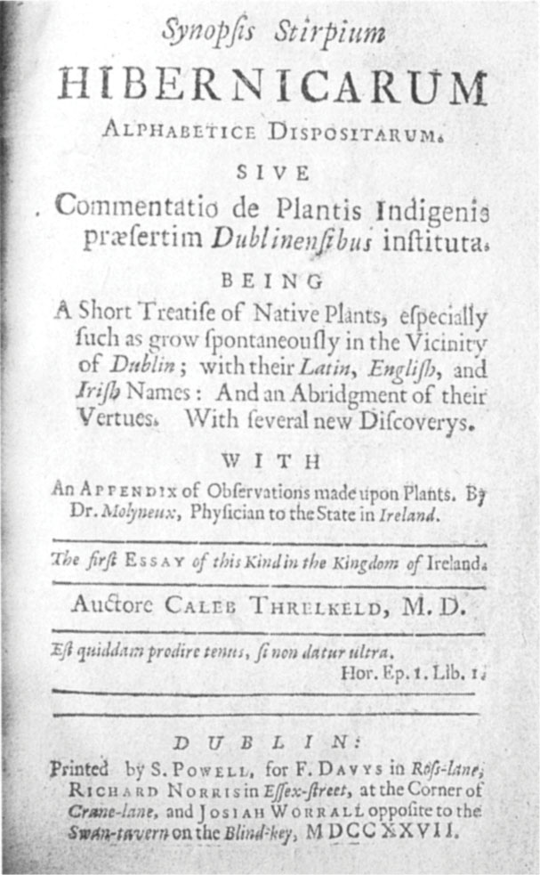 Caleb Threlkeld’s Synopsis stirpium Hibernicarum (1726), the earliest Irish flora.
