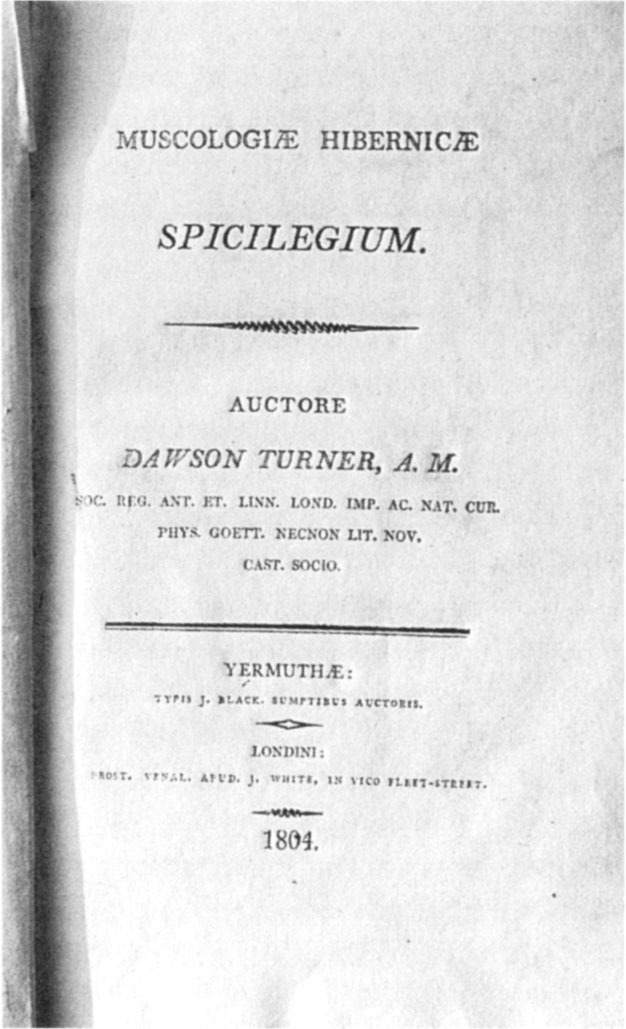 Turner’s Muscologiae Hibernicae (1804). Although originating from England the book is well grounded on Irish data.
