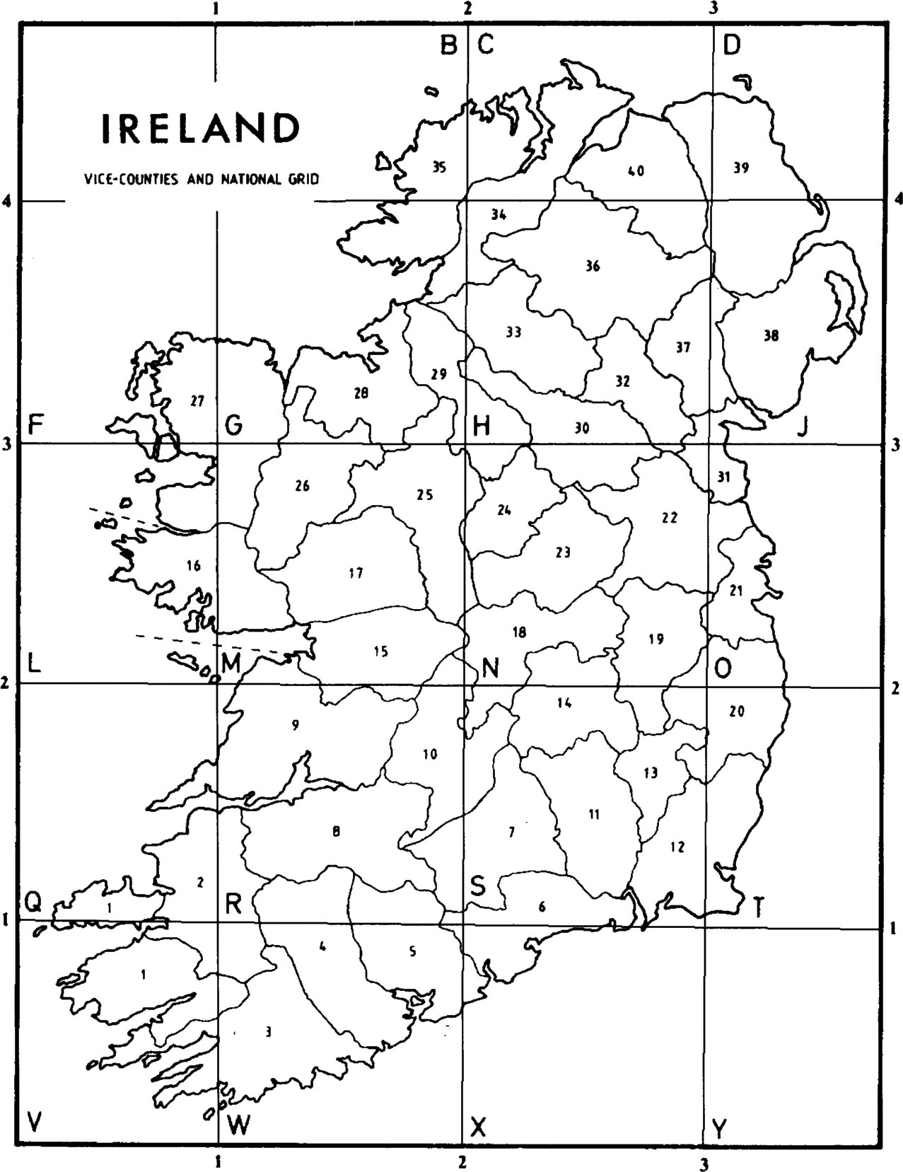 A departure from the presentation of traditional floras came with the publication in 1866 of Cybele Hibernica66 by David Moore (1807–79) and Alexander Goodman More (1830–95). When living in England, More had worked with H.C. Watson who devised, for Cybele Britannica (1847–59)67 a scheme of 18 ‘provinces’ that were later split into 112 ‘vice-counties’, a first move towards the recording of plant distribution on a quantitative basis. This was the ancestor of the dot distribution maps showing the presence or absence of a species within a grid of 10 km squares, now the internationally accepted grid recording system.