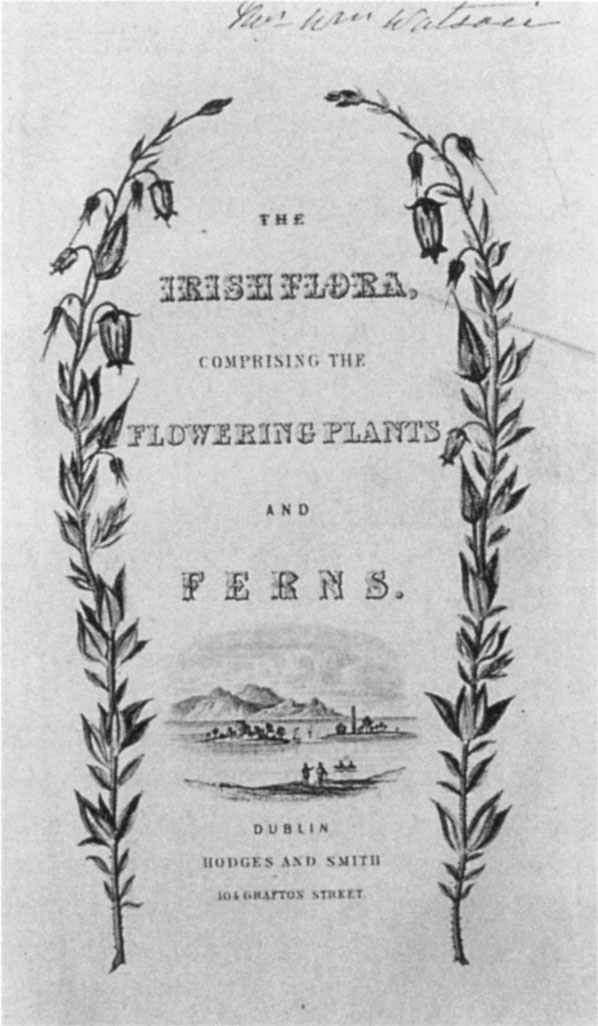 The first national flora was The Irish Flora Comprising the Phaenogramous Plants and Ferns, published anonymously in 1833.60 Katherine Sophia Baily (1811–86), later Lady Kane and wife of Sir Robert Kane, was the reputed author at the tender age of 22. John White of the National Botanic Gardens is acknowledged in the preface as having supplied the localities for plants. Three years later James Townsend Mackay (1775?—1862), a Scot who had been appointed Curator of the Trinity College Botanic Garden at Ball’s Bridge in 1806, brought forth Flora Hibernica,61 a much more substantial and scholarly work which ambitiously encompassed both phanerogams (seed-bearing plants) and cryptogams (those that do not produce seeds) of the entire island in one work. The book was a joint effort, despite no acknowledgement on the title page – the other contributors are acknowledged later in the text – between William Henry Harvey (1811–66) who was responsible for the section on algae and Thomas Taylor (d.1848) who wrote the sections on mosses, liverworts and lichens while Mackay dealt with the flowering plants, ferns and stoneworts.