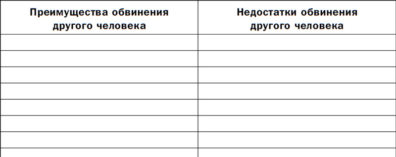 Вспомните о том, с кем вы не ладите, и перечислите преимущества обвинения этого человека в левой колонке таблицы.