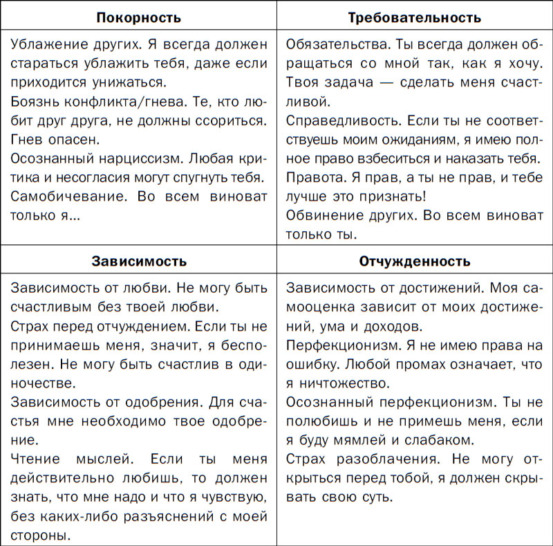 Примеры, указанные в нижней части таблицы – зависимость и отчужденность, – помогут определить степень вашей самооценки.