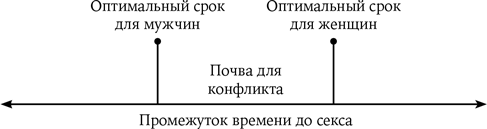 Возьмем самый простой пример: чем отличаются мужской и женский взгляды на то, сколько времени должно пройти после первого свидания до секса? Женщинам часто требуется больше времени, чтобы оценить достоинства партнера. Качества, которые идут в зачет партнерской ценности мужчины, – внимательность, предполагаемое повышение статуса в будущем, надежность, здоровье, чувство юмора, существующие обязательства, семейные связи, хорошие гены – не поддаются точной оценке с первого взгляда. Физическую привлекательность, важный компонент партнерской ценности для обоих полов, можно оценить за миллисекунды, но в мужчинах она ценится меньше, чем в женщинах. Более того, ошибки в выборе полового партнера женщинам обычно обходятся дороже, чем мужчинам. Женщины рискуют забеременеть от нежеланного партнера или в неподходящее время, с более высокой вероятностью заразиться инфекцией, передающейся половым путем, серьезно испортить репутацию. Да, двойные стандарты до сих пор существуют, даже в странах с самым высоким уровнем гендерного равенства, таких как Швеция или Норвегия. Основываясь исключительно на асимметричных рисках, женщины и мужчины разошлись в представлениях об оптимальном промежутке времени, которое должно пройти до секса (см. ниже).