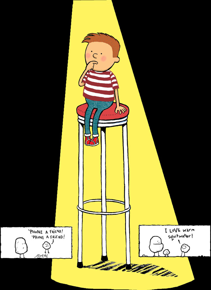“Correct,” said Fuzzby, scribbling something on the clipboard with the stub of a viciously chewed pencil. “You’re obviously a bright lad. Second question: how many hands do you have?”