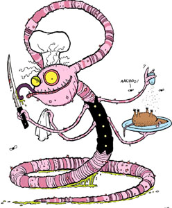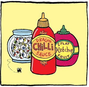 “Nice big dollop of ketchup and you’ll have a feast that would please a greedy bellyhog on the rampage,” said the monster.