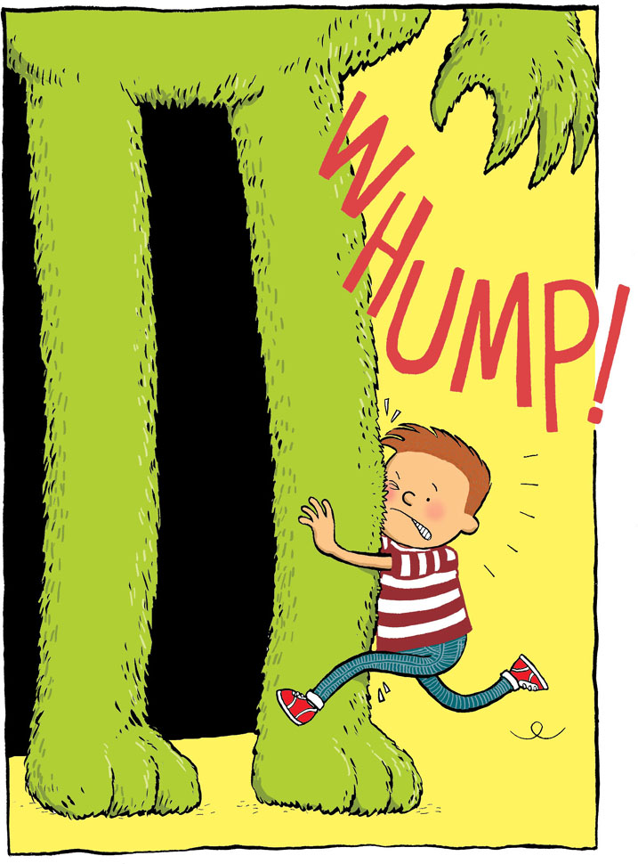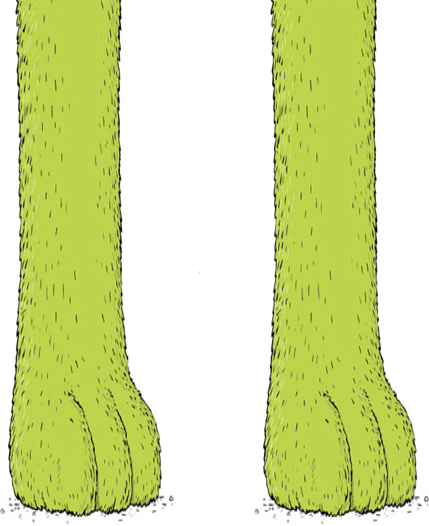He ran straight into a pair of long, thick legs. Legs wearing green, furry trousers. Was this the latest fashion? He didn’t think much of it.
