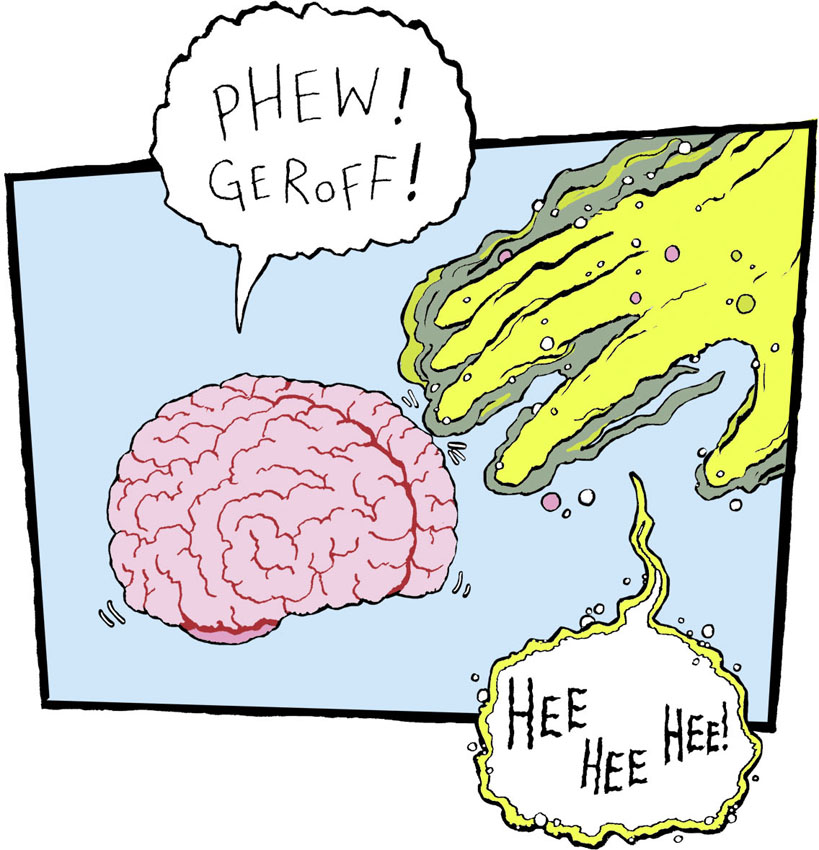 Joe attempted to slide past her, but Grotty Grace pressed her spotty face up close to his so that her smelly burger-breath swept up his nose and poked his brain like stinky fingers.
