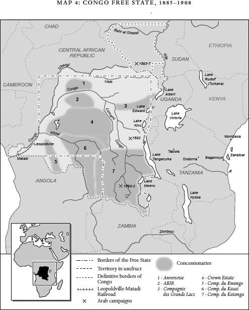 The reason behind Leopold’s sudden haste could be traced, once again, to rivalry among the European states. He was afraid that others would beat him to the punch. And some of them did. To the south, the Portuguese were still asserting their rights to their old colony. And to the north, Savorgnan de Brazza had begun in 1880 to establish similar treaties with local chieftains. Brazza was an Italian officer in the service of the French army, officially charged with setting up two scientific stations on the right bank of the Congo. France itself took part in the Association Internationale Africaine chaired by Leopold, and those two stations were the French contribution to the king’s initiative. But Brazza was also a fanatical French patriot who, at the behest of no nation whatsoever, was busy establishing a colony for his beloved France: it would later become the republic of Congo-Brazzaville.32 By 1882 people in Europe had begun to realize that someone was independently buying up large sections of Central Africa. That led to great consternation. Leopold had no choice but to act.
