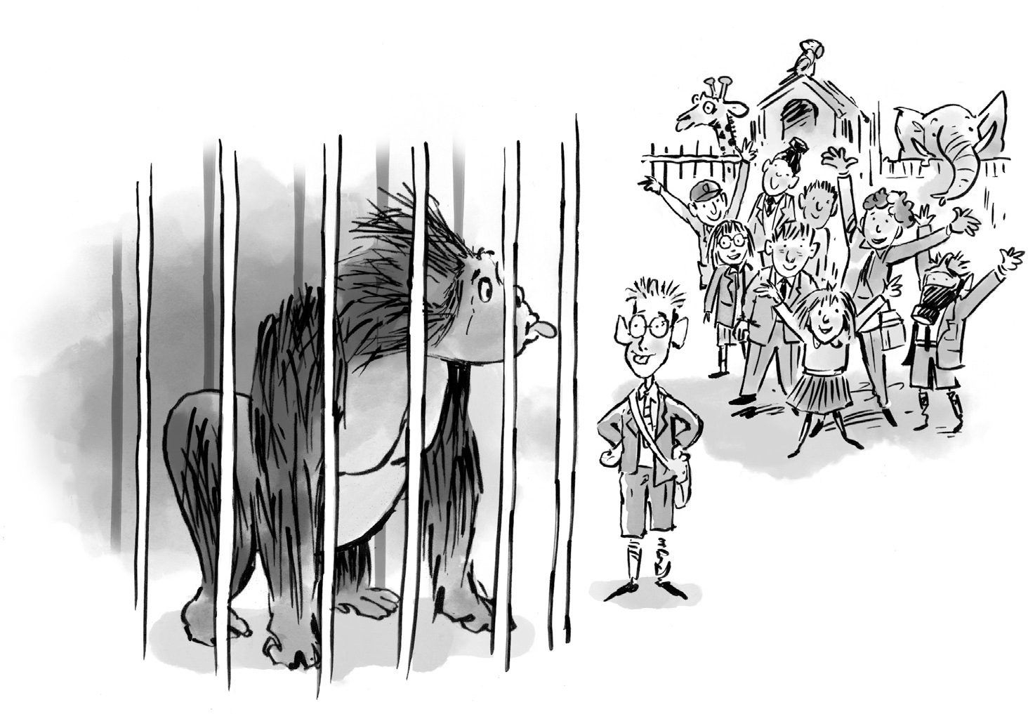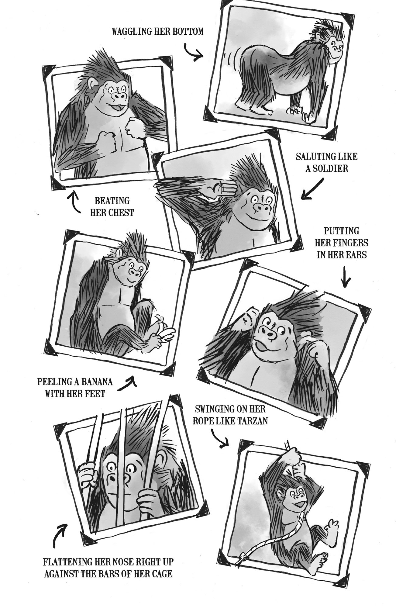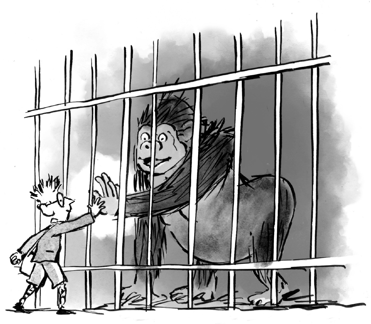 “OW!” exclaimed Eric as he was hauled away. He stole a look back at Sid, and then at Gertrude. The gorilla was sitting in her cage, having watched the entire scene. Although she couldn’t speak human, Gertrude had clearly understood much of what had happened.