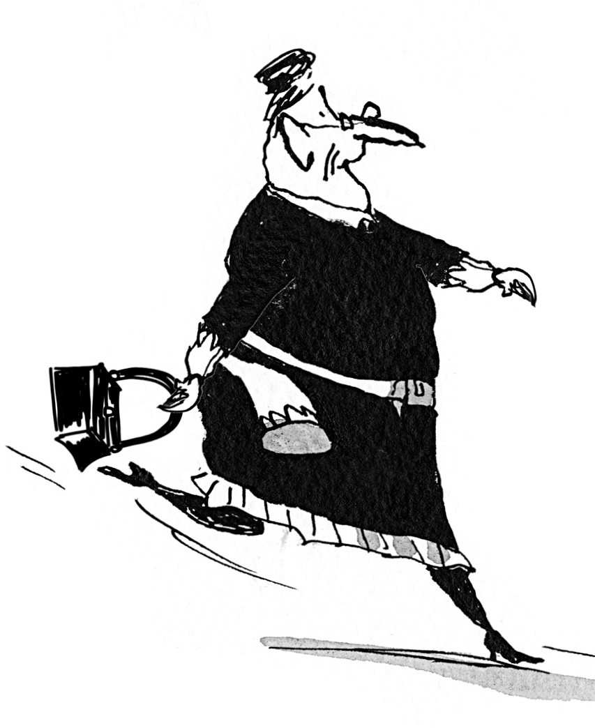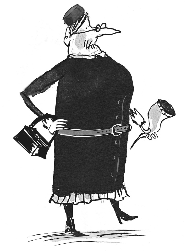 “Don’t you worry – we’re going!” The lady marched off. On each of her steps, Gertrude blew a raspberry…
