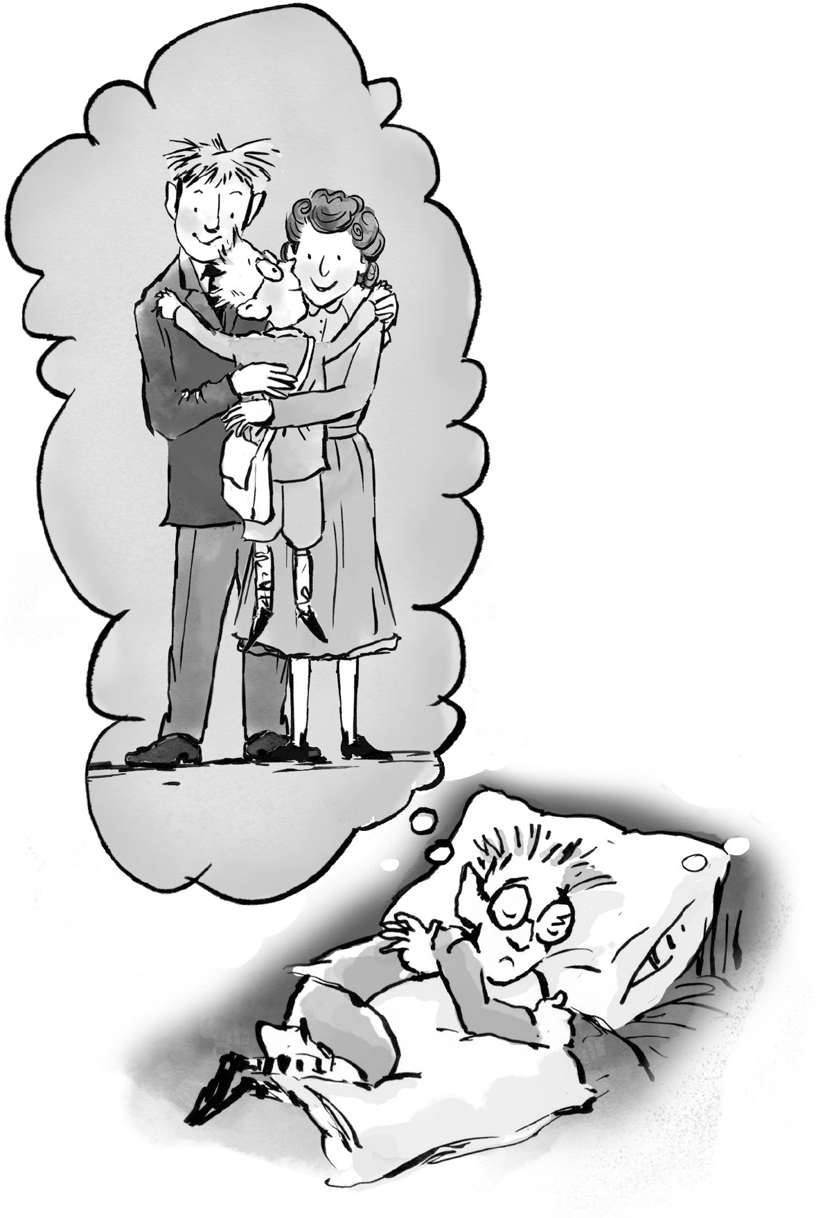 Up there in the tiny box room of her house, Eric nestled himself between the two pillows on his bed. He dreamed they were his mum and dad. The pillows were cold and damp. Still, he shut his eyes. Maybe, just maybe, if he concentrated hard enough, he would find himself back in a perfect family muddle.