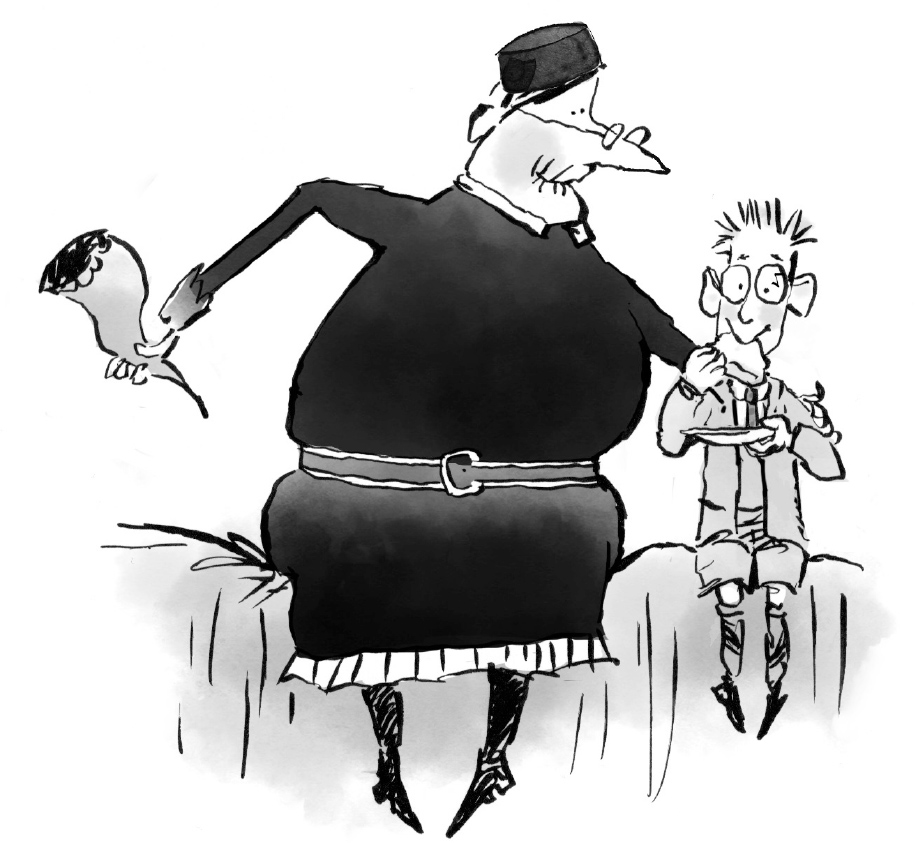 “I tell my grandson time and time again there’s a war on! It’s not safe! He needs to come straight home from school!” began Grandma. “But oh no! Sidney Pratt has other ideas! Wants the boy to be a zookeeper just like him! Shovelling doodahs all day! I bet he even sneaks the boy in here for free!”
