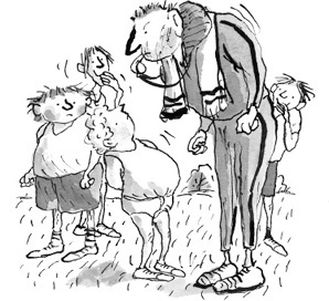 “Likely story!” scoffed Mr Bruise. Like most PE teachers, it was difficult to imagine him wearing anything other than a tracksuit.