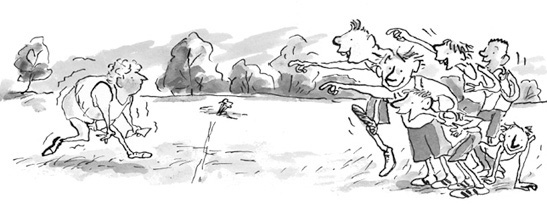Joe edged ahead, still gripping his side in pain. Hundreds of little cruelly smiling faces were coming into focus now. The new boy crossed the finish line with only a hum of mocking laughter. Trailing behind was Bob, clutching his fifty-pound note, since there were no pockets in his Y-fronts. As he neared the finish line the kids started chanting.