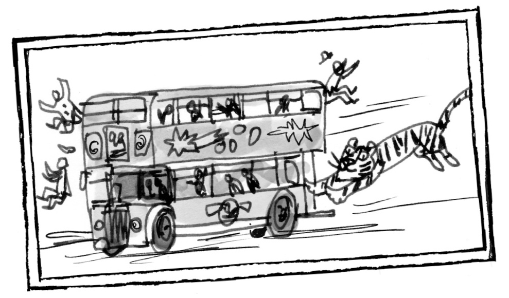 …or a fugitive tiger leaping on the back of a double-decker bus…