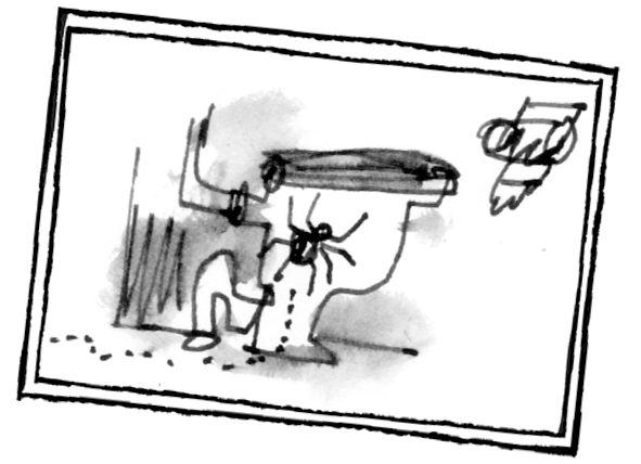Imagine sitting on the toilet, and a huge, furry spider bites you on the bottom.