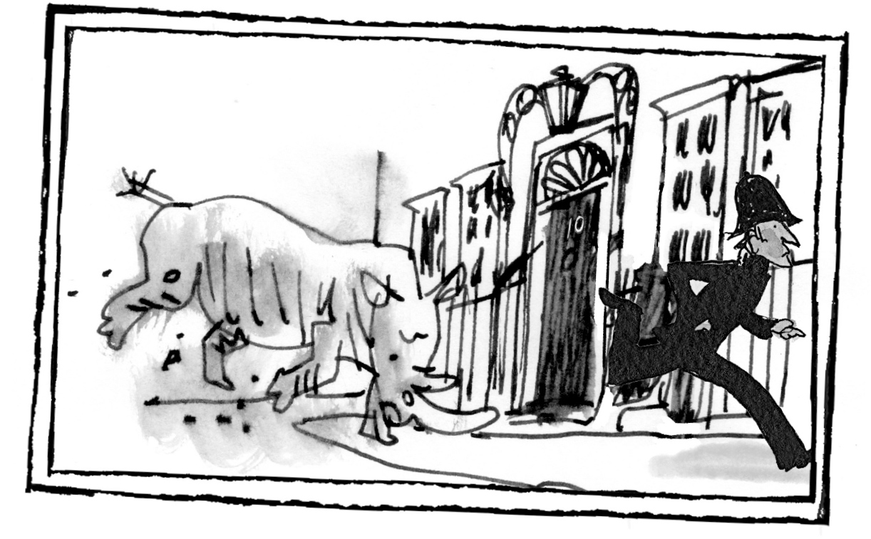…or a runaway rhinoceros charging towards 10 Downing Street to knock down the door of the prime minister himself!