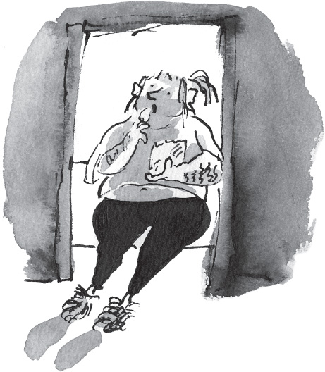 Even now, as she stood in the doorway, Zoe’s stepmother was holding a packet of the noxious snack with one hand and feeding her face with the other while she surveyed the scene. As always, she was wearing a long grubby white T-shirt, black leggings and furry pink slippers. The bits of skin that were exposed were covered in tattoos. Her arms bore the names of her ex-husbands, all since crossed out: