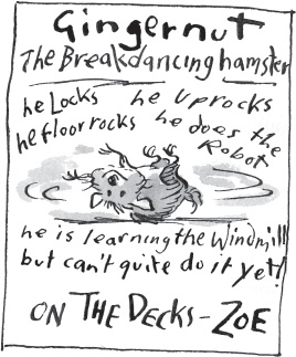 Zoe’s dream was to make her little pet world famous as the very first breakdancing hamster! She planned to put on a little show at Christmas for all the other children on the estate. She even made a poster to advertise it.