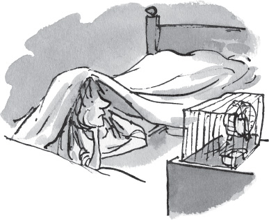 With tears streaming down her face, Zoe lay down in bed, and covered herself with her duvet. She turned to her right side. In the half-light she stared at the cage as she did every night.