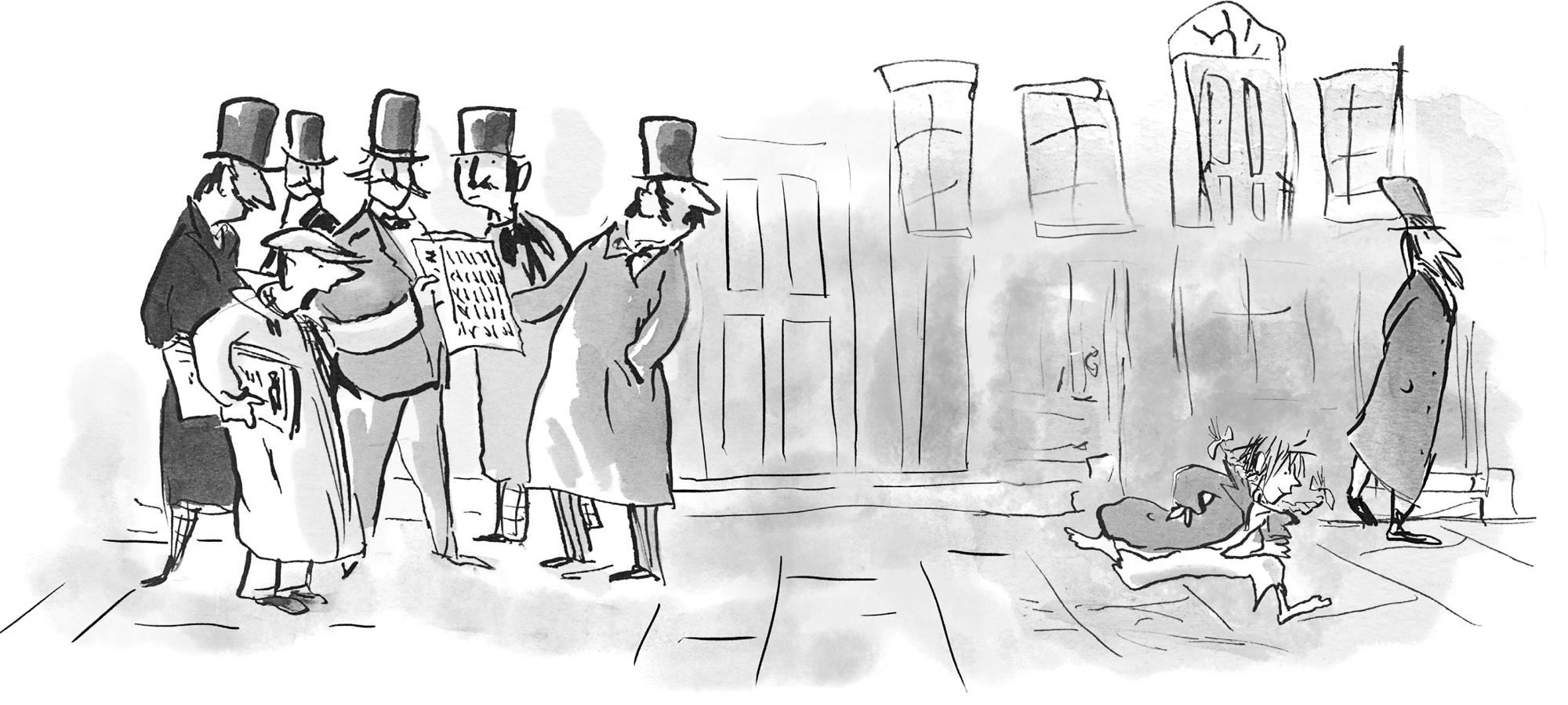The girl had just swiped an apple off a market stall for her breakfast. Munching contentedly, she wove her way through the march of top-hatted gentlemen heading for work, until she reached the newspaper stand.