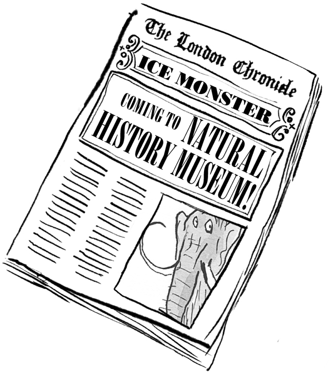 Soon she was sneaking into the museum every single day. Elsie couldn’t read, but she earwigged in on the guides and soon became something of an expert. So, when she saw a picture of the “Ice Monster” on the front page of the newspaper, she knew instantly that it was, in fact, a woolly mammoth. Elsie had learned that these creatures had lived during the Ice Age, when sabre-toothed tigers, GIANT bears,