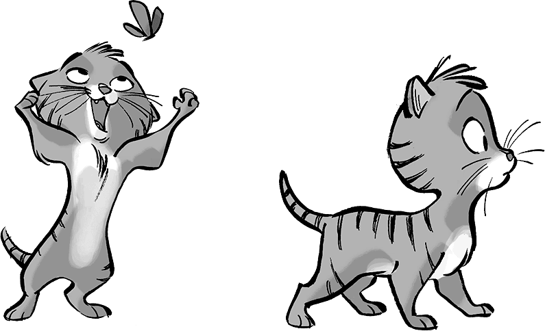 Малышом был Помпончик – жизнерадостный котёнок, который пришёл вместе с Жозефиной. Его шкурку украшали изящные тёмно-рыжие полоски. Увидев двух сцепившихся котов, Помпончик усмехнулся. Мистер Луноброд, напустив на себя вид светского льва, подошёл к котёнку и внимательно его оглядел.